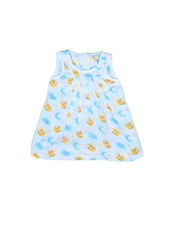 Light Blue Sleeveless Cotton Dress with Moon & Bear Print | Soft Summer Outfit (9-12 Months)